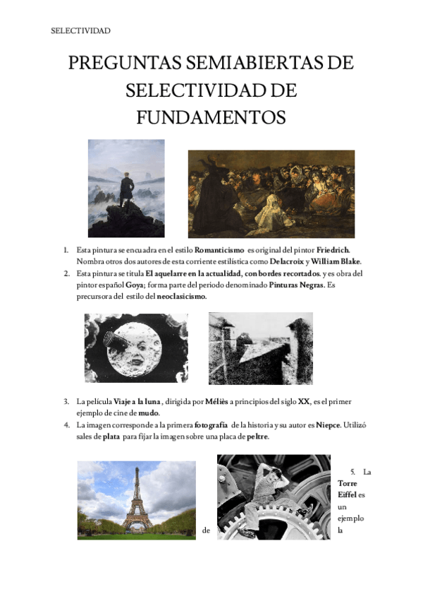 preguntas de selectividad que te pueden preguntar para historia del arte