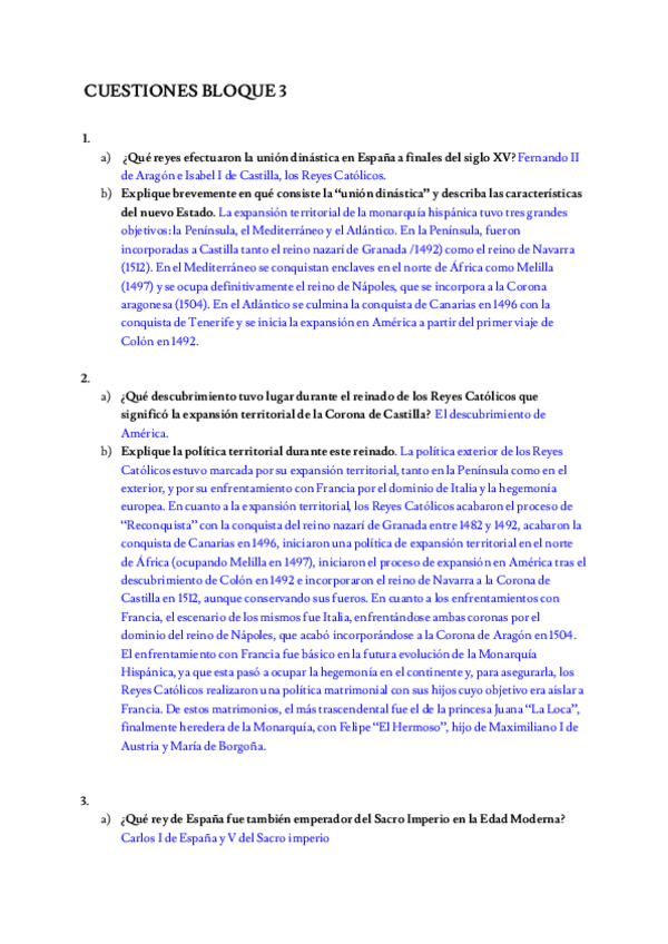 Preguntas que pueden salir en historia de españa en Selectividad