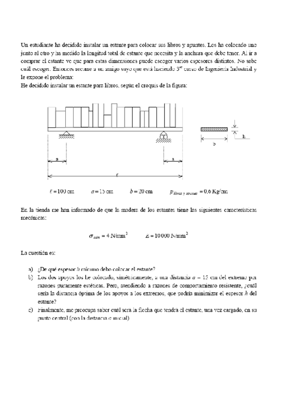 He publicado nuevos ejercicios de 2º Resistencia de Materiales: ejercicio-estanteria.pdf