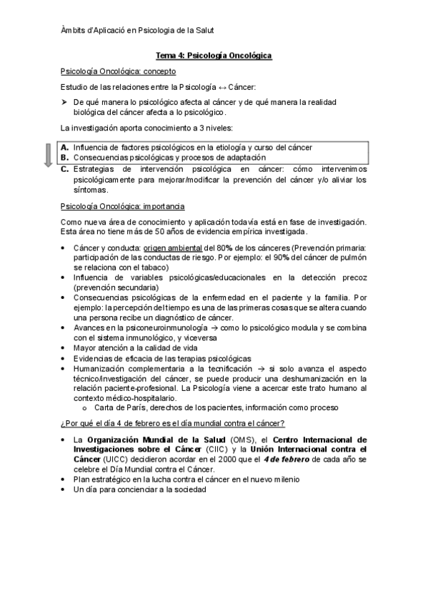 He publicado nuevos apuntes de 4º Ámbitos de Aplicación en Psicología de la Salud: T4-Psicologia-Oncologica.pdf