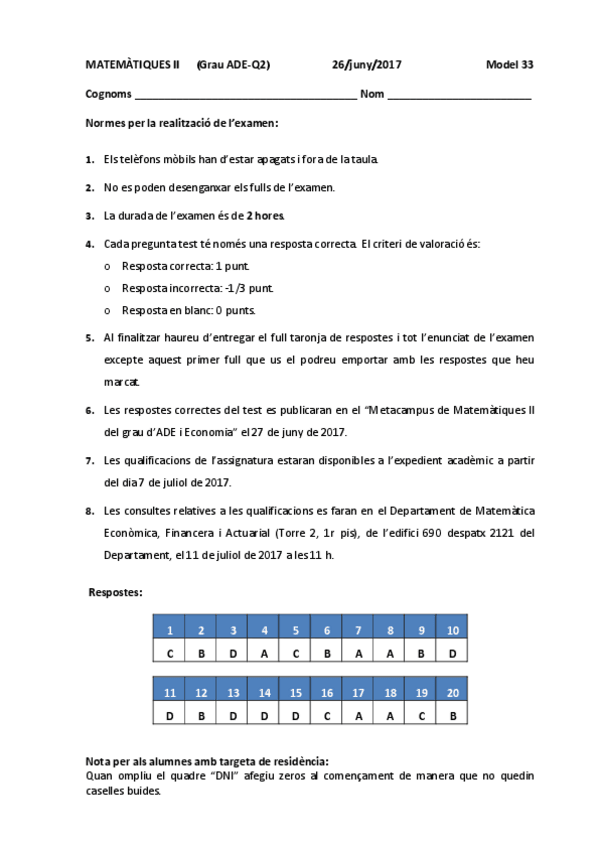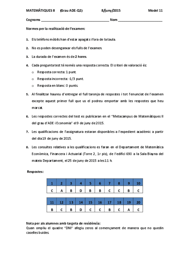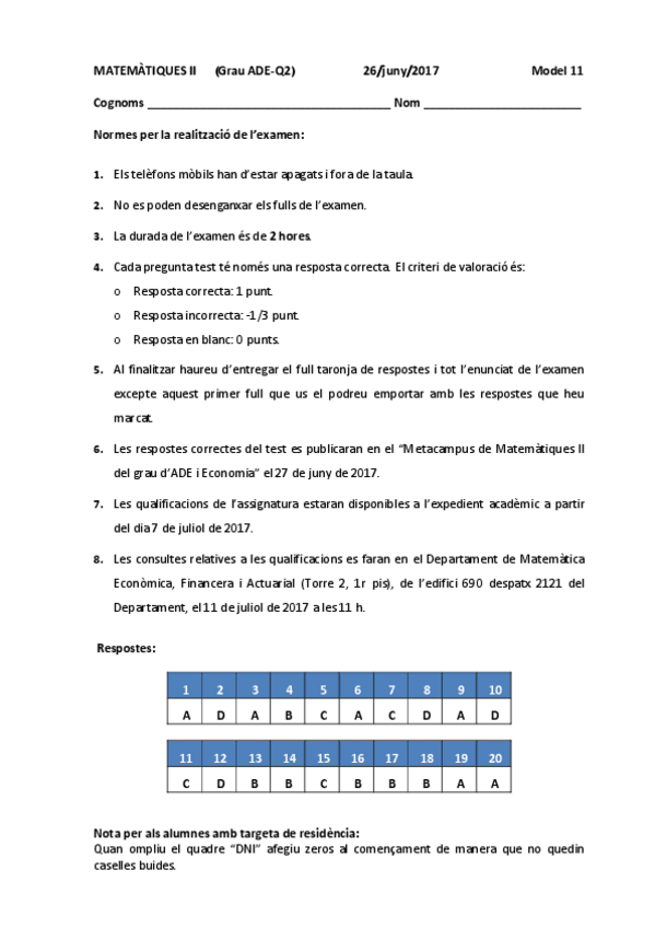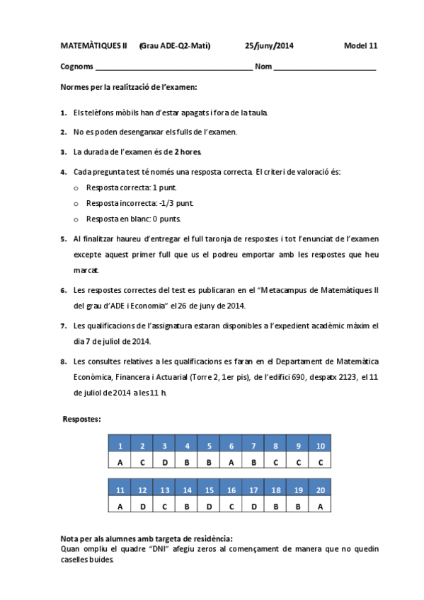 He publicado nuevos examenes de 1º Matemàtiques Ii: Exàmens 2014, 15, 16, 17