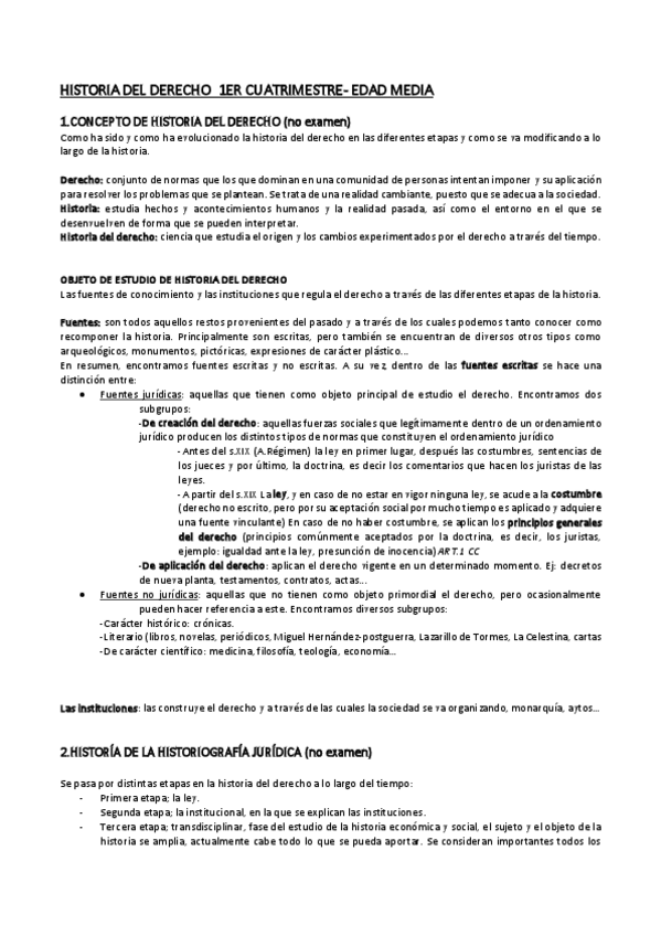 apuntes muy completos TAL CUAL lo que se dicta. HISTORIA DEL DERECHO Edad Media- PRIMER CUATRIMESTRE HISTORIA DEL DERECHO EDAD MODERNA- SEGUNDO CUATRIMESTRE