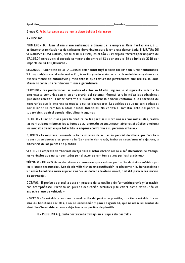 PRÁCTICAS RESUELTAS DERECHO LABORAL