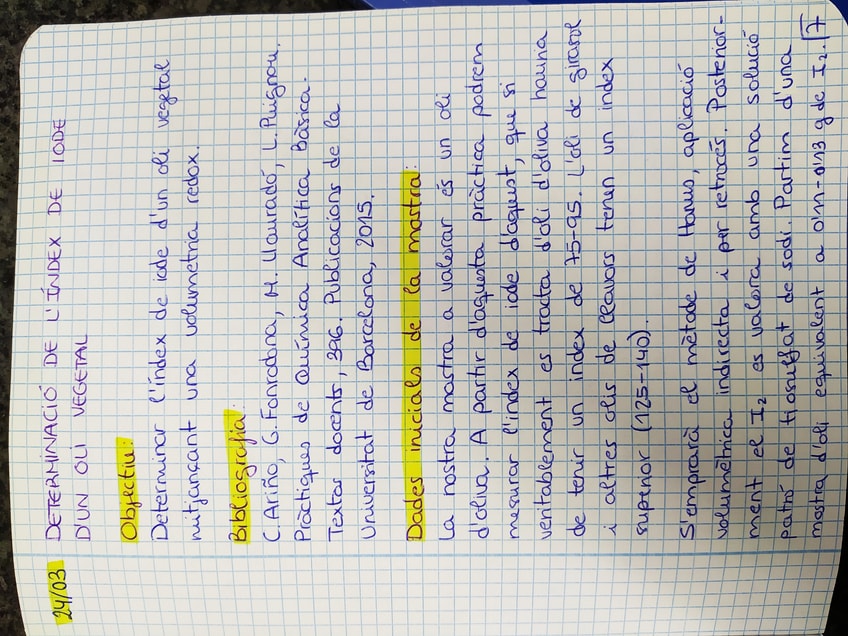 He publicado nuevos practicas de 1º Química Analítica: Índex de iode en oli vegetal
