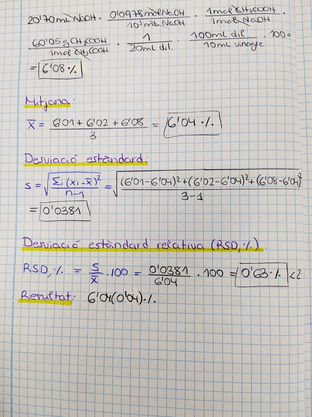 Determinació acidesa total vinagre