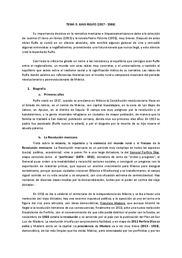 TEMA 5: RULFO + RESUMEN PEDRO PÁRAMO