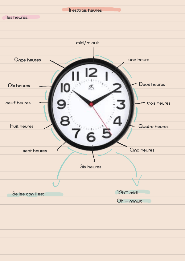 Los minutos y hora en francés con una breve explicación de cómo usarlos