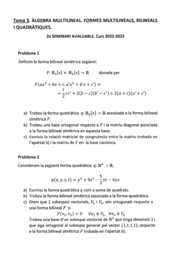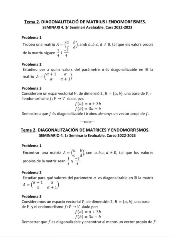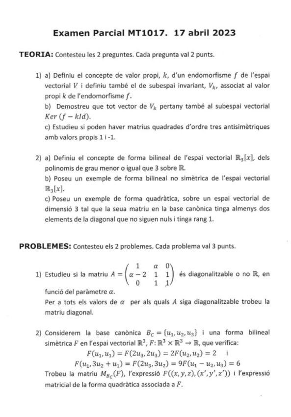 He publicado nuevos examenes de 1º Álgebra Lineal: Examenes (Parciales, Seminarios y Finales 2023