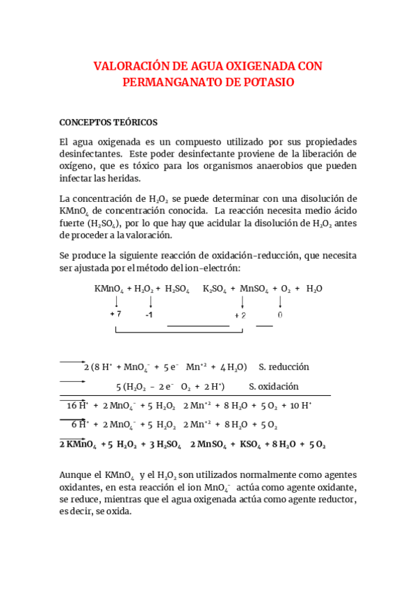 Practicas de laboratorio- Valoración á. acético y agua oxigenada + balance ion-electrón.