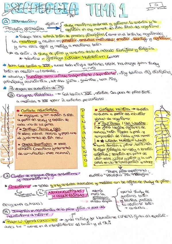 Resumen esquematizado del tema 1 de la asignatura Psicología Fisiológica.