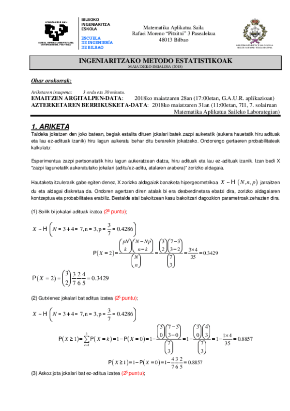 He publicado nuevos examenes de 1º Métodos Estadísticos de la Ingeniería: 2018ohikoaebatzitaon.pdf