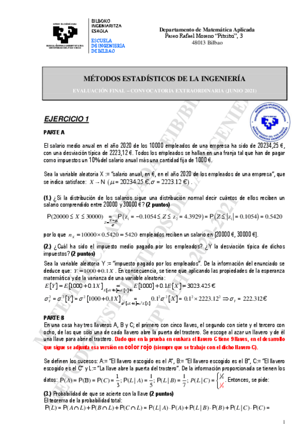 He publicado nuevos examenes de 1º Métodos Estadísticos de la Ingeniería: EXAMEN2020-2021.pdf