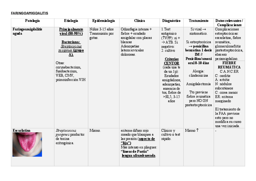 tablas resumen sobre las infecciones del tracto respiratorio superior. infecciosas. HGUGM