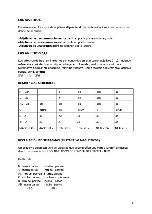 Concepto de lengua flexiva, las funciones de los casos, la primera y segunda declinación+desinencias, el verbo latino, los temas verbales, el presente de indicativo activo, el pretérito imperfecto indicativo activo, tipo de oraciones, el verbo SUM, ESSE,