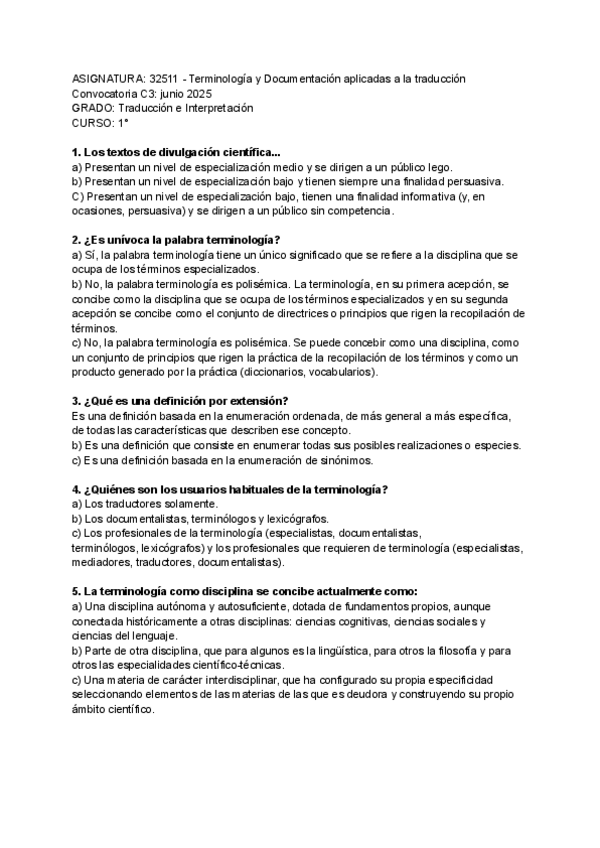 Preguntas examen final terminología y documentación