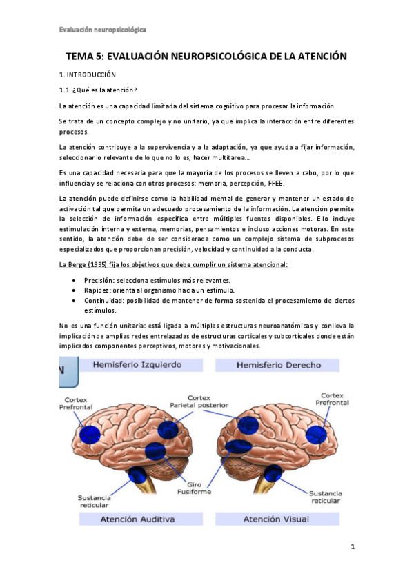 APUNTES EVALUACIÓN NEUROPSICOLÓGICA