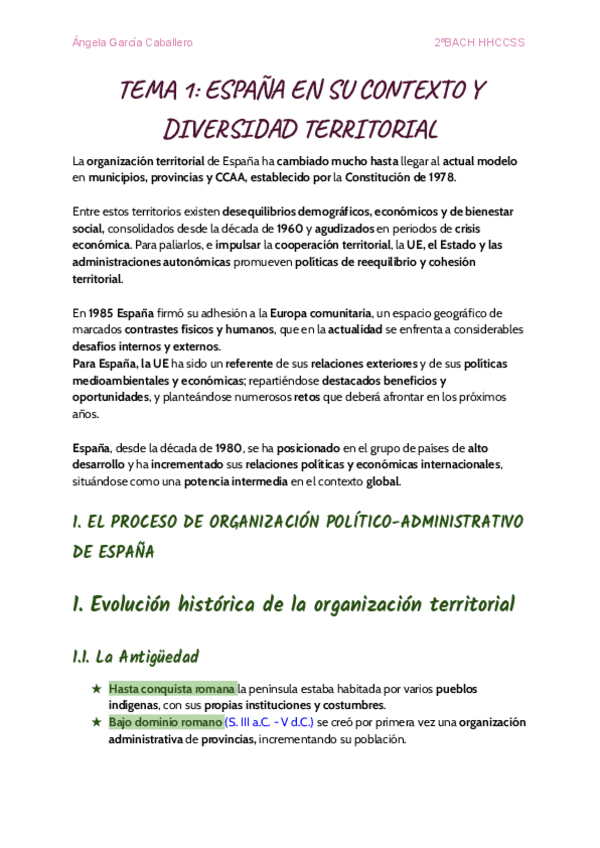 TEMA 1-ESPAÑA EN SU CONTEXTO Y DIVERSIDAD TERRITORIAL Para 2º de BACH