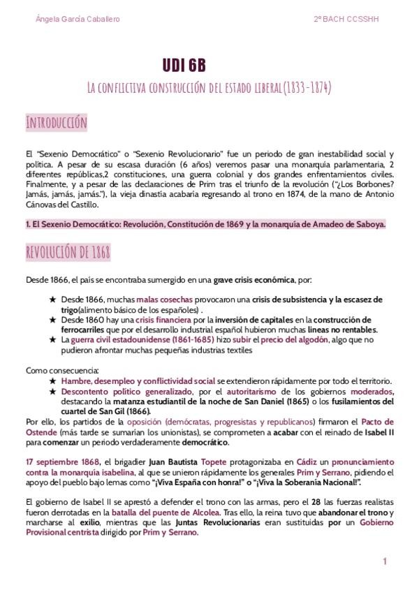 Bloque 6-La conflictiva construcción del Estado Liberal(1833-1874) Para 2º BACH, con ejemplos.