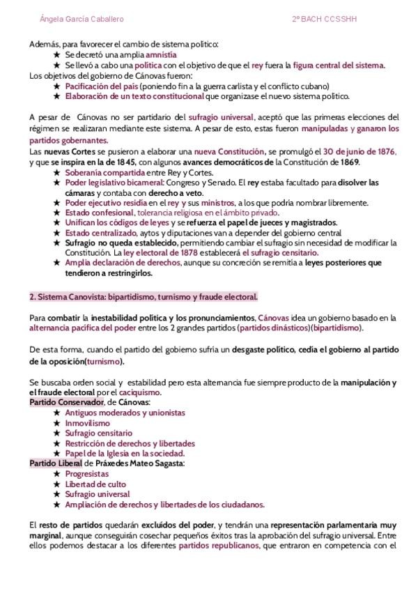 Bloque 7-La Restauración Borbónica_ implantación y afianzamiento de un nuevo Sistema Político (1874-1902) Para 2º BACH, con ejemplos.
