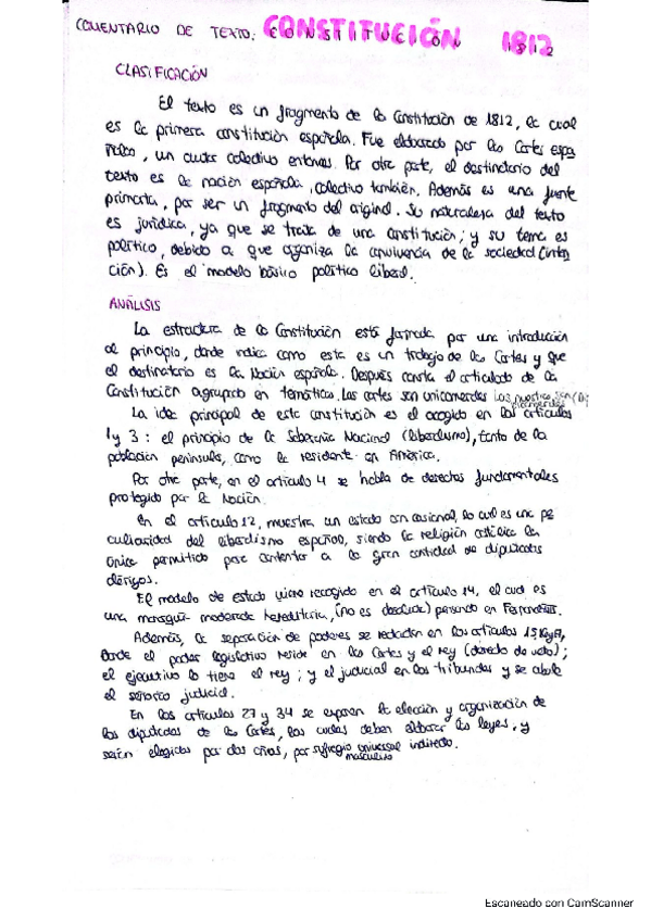 Comentario de texto Constitución 1812