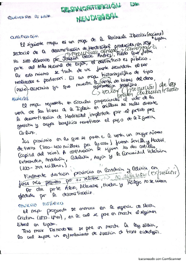 Comentario de mapa Desamortización de Mendizábal