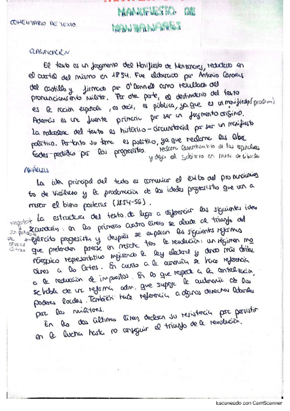 Comentario de texto Manifiesto de Manzanares