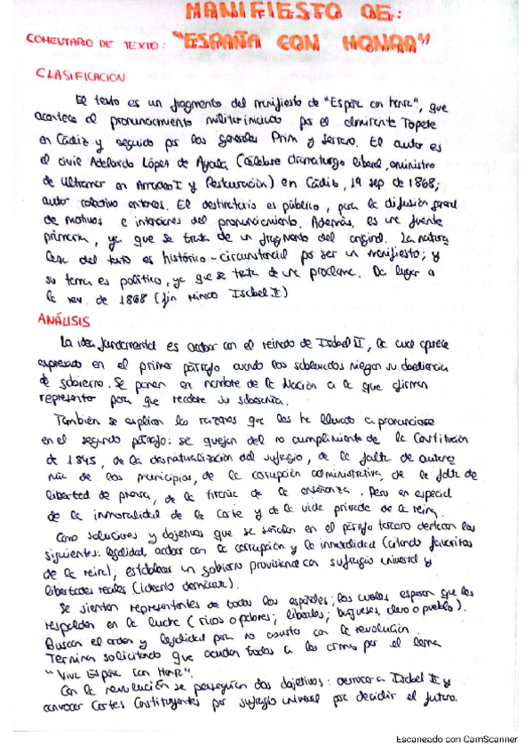 Comentario de texto Manifiesto de España con honra