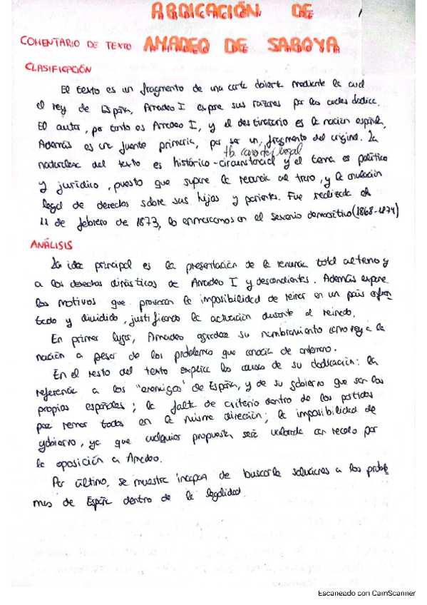 Comentario Abdicación de Amadeo de Saboya