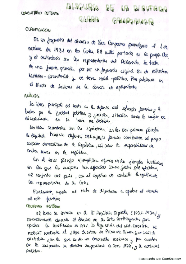 Comentario de texto Discurso de la diputada Clara Campoamor