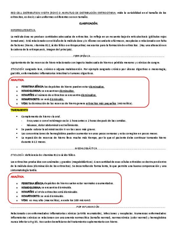 Apuntes completos con tablas para detectar los tipos de anemia :)