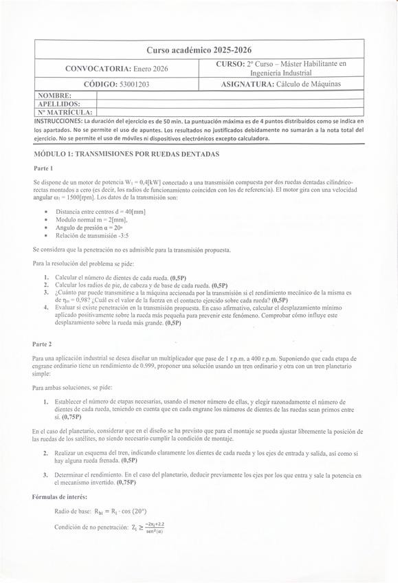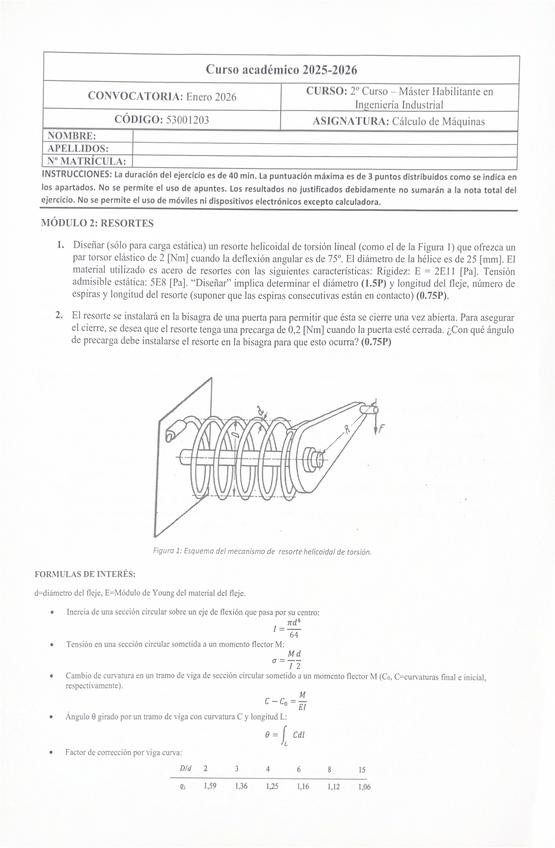 He publicado nuevos examenes de 2º Cálculo de Máquinas: Examen-2026yproblema32025.pdf