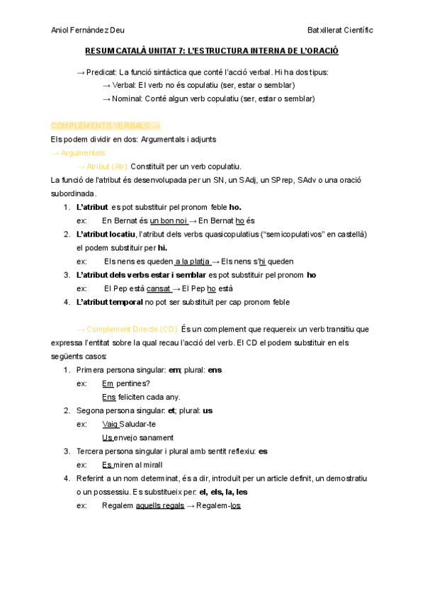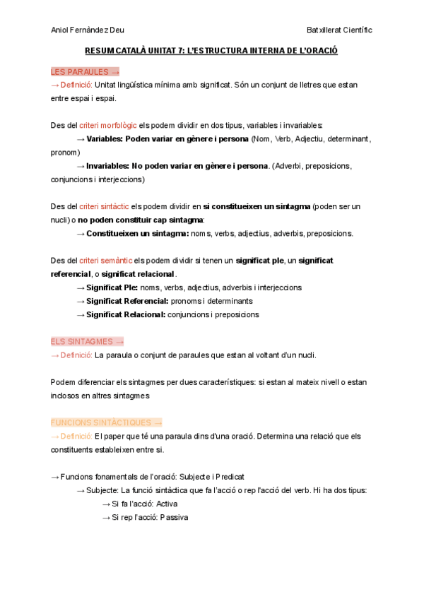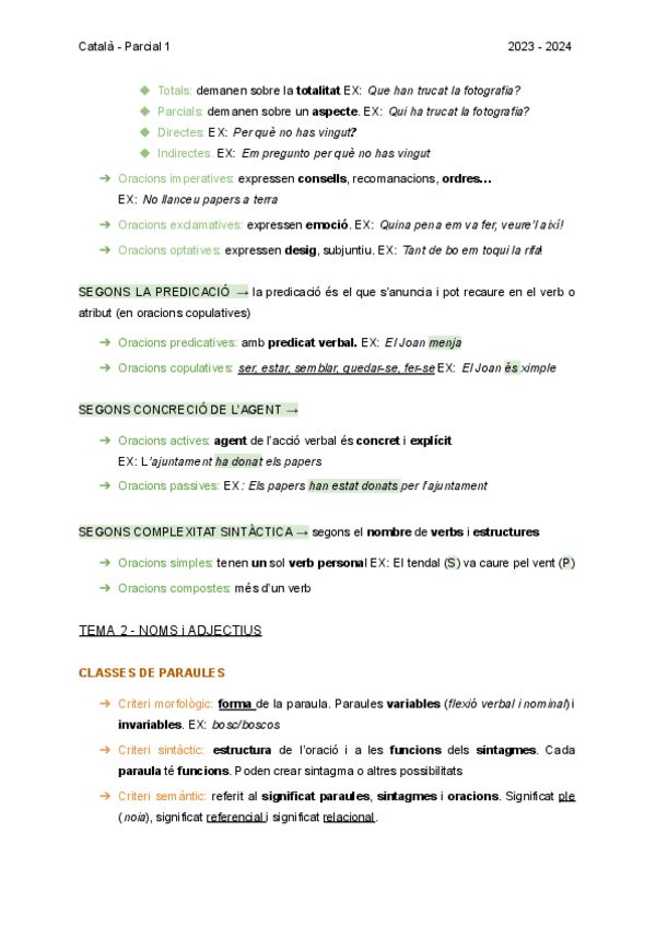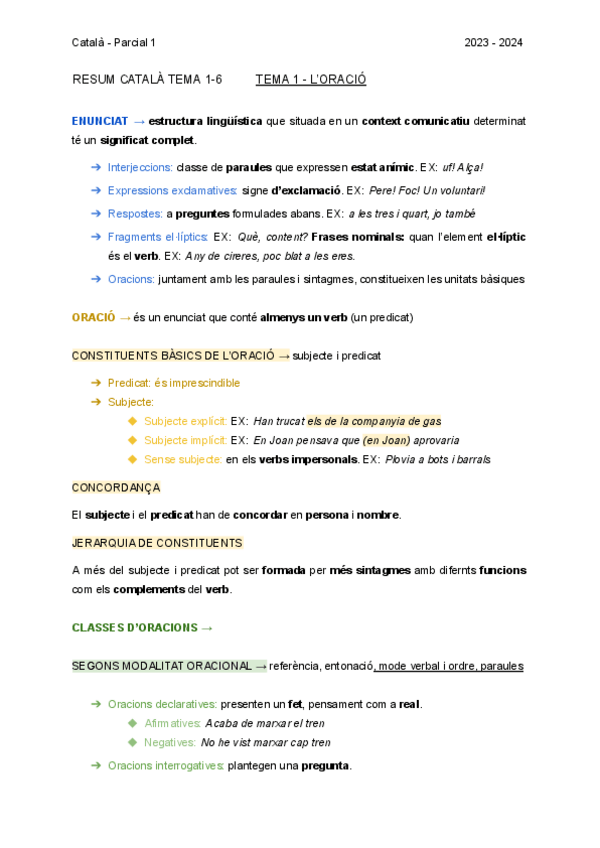 Apunts en català sobre: L’enunciat, l'oració, les classes d’oracions, les categories gramaticals, els elements paratextuals i les referències textuals