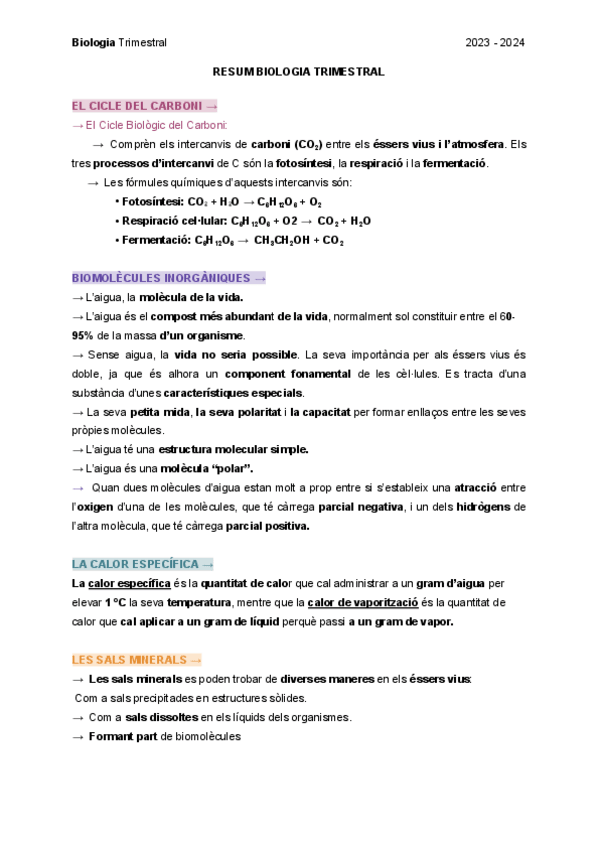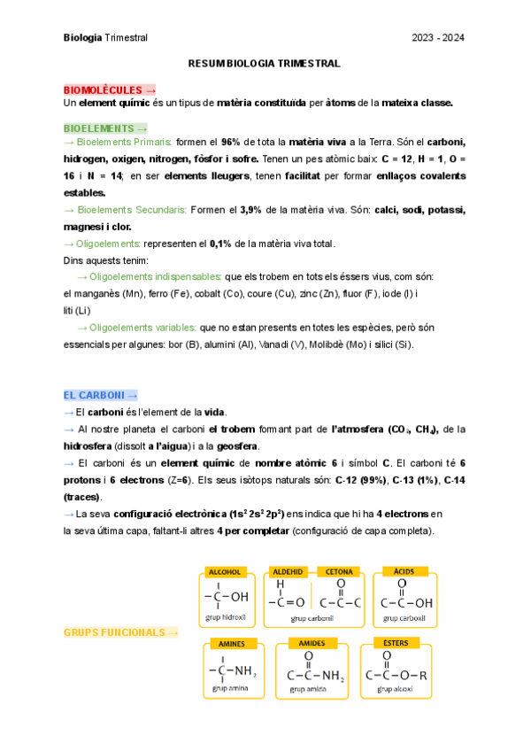 Resumen en catalán de Biología de Biomoléculas, Bioelementos, Glúcidos y Lípidos