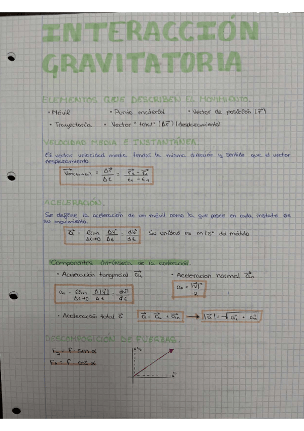 Resumen del tema de Interacción Gravitatoria con formulas y formulario para examen. Hechos a mano, de los apuntes del profesor.