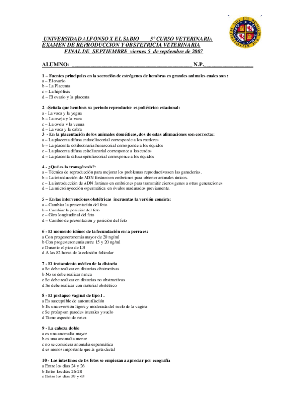 He publicado nuevos examenes de 5º Obstetricia y Patologia de la Reproduccion: Exámenes 2007