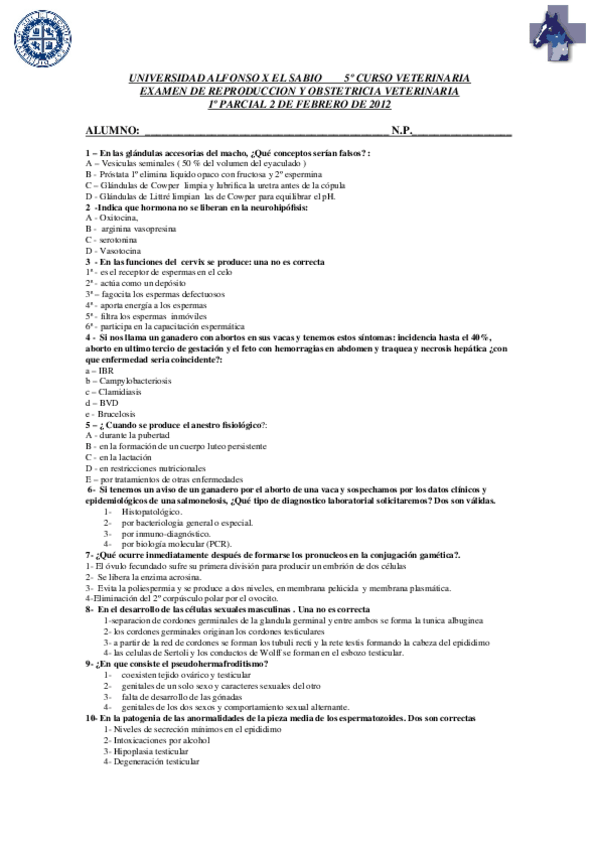 He publicado nuevos examenes de 5º Obstetricia y Patologia de la Reproduccion: Exámenes 2008-2012