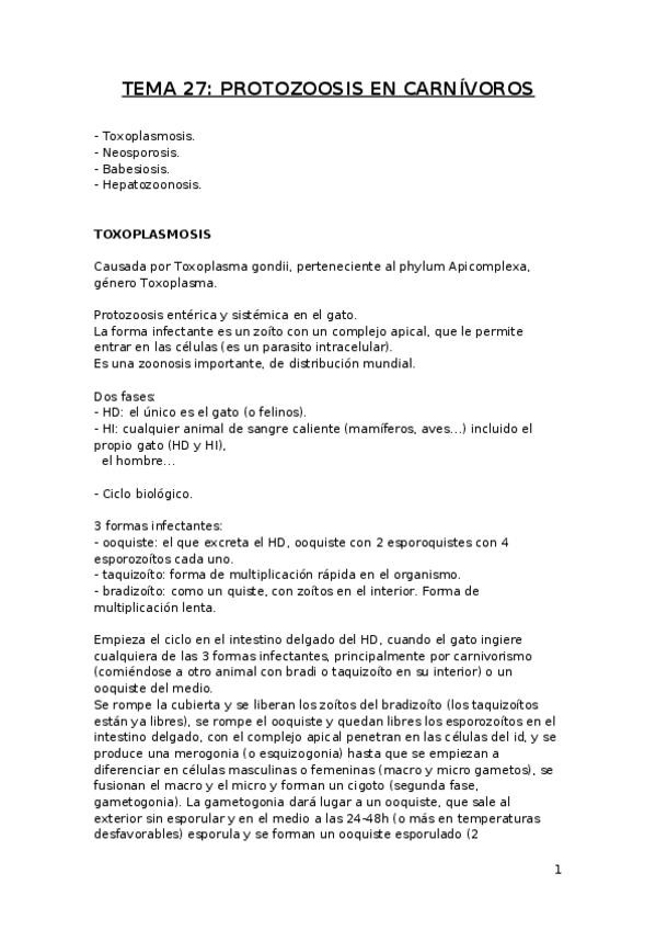 He publicado nuevos apuntes de 3º Enfermedades Parasitarias: Tema 27- protozoosis en carnivoros (completo).docx