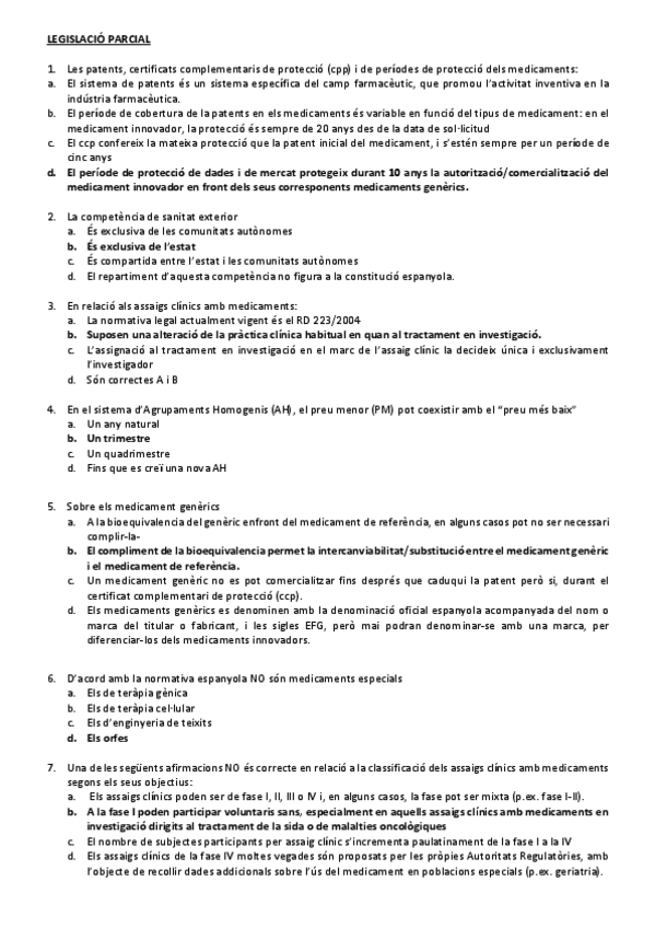 He publicado nuevos apuntes de 3º Legislación y Deontología Farmacéuticas: preguntes parcial.pdf