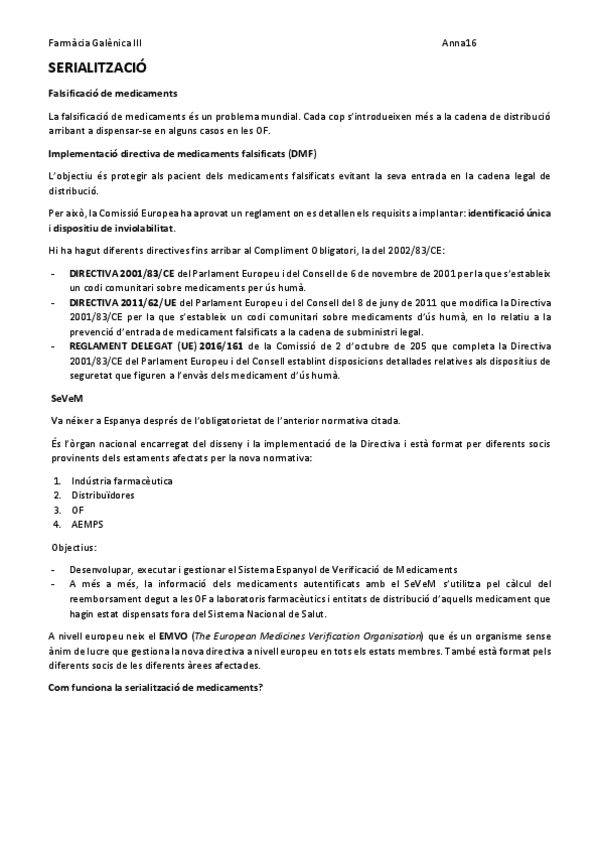He publicado nuevos apuntes de 4º Farmacia Galénica III y Gestión de la Calidad: SERIALITZACIO.pdf