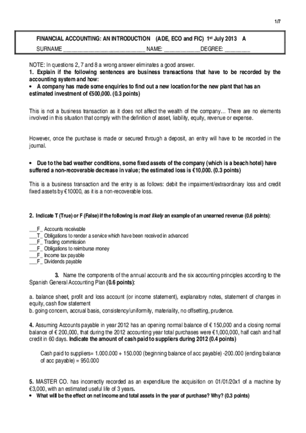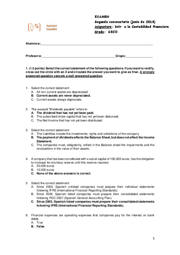 He publicado nuevos apuntes de 1º Contabilidad Financiera: Examenes con solucion