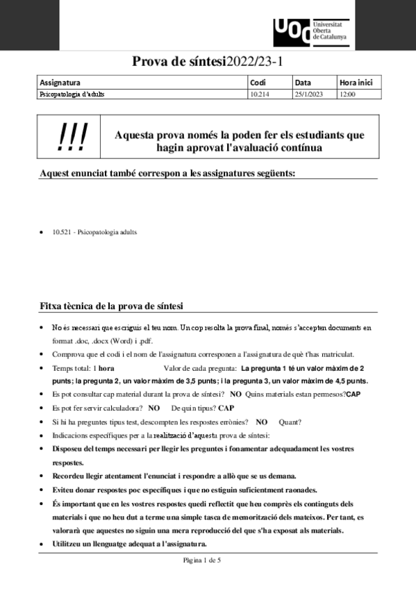 Exámenes Psicopatología de Adultos