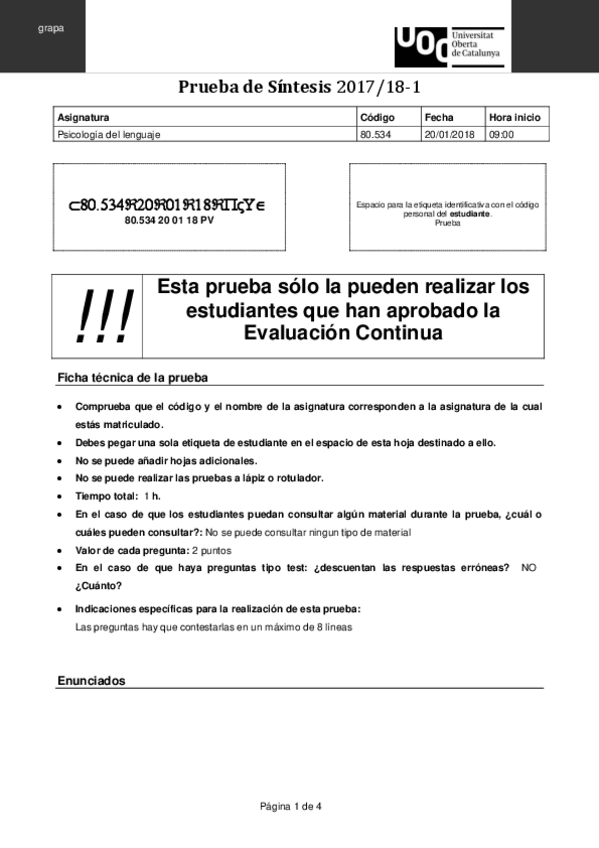 Exámenes Psicología del Lenguaje