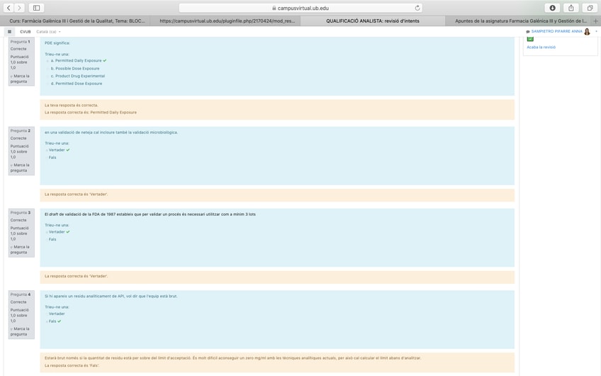 He publicado nuevos apuntes de 4º Farmacia Galénica III y Gestión de la Calidad: QÜESTIONARI ANALISTA PRÀCTIQUES