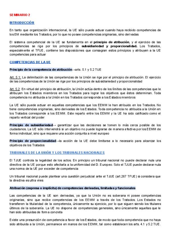 Apuntes del 2º seminario de derecho de la unión europea, que sirven para el 1º parcial de seminarios y para los apuntes del examen final ya que están muy bien los apuntes de completos