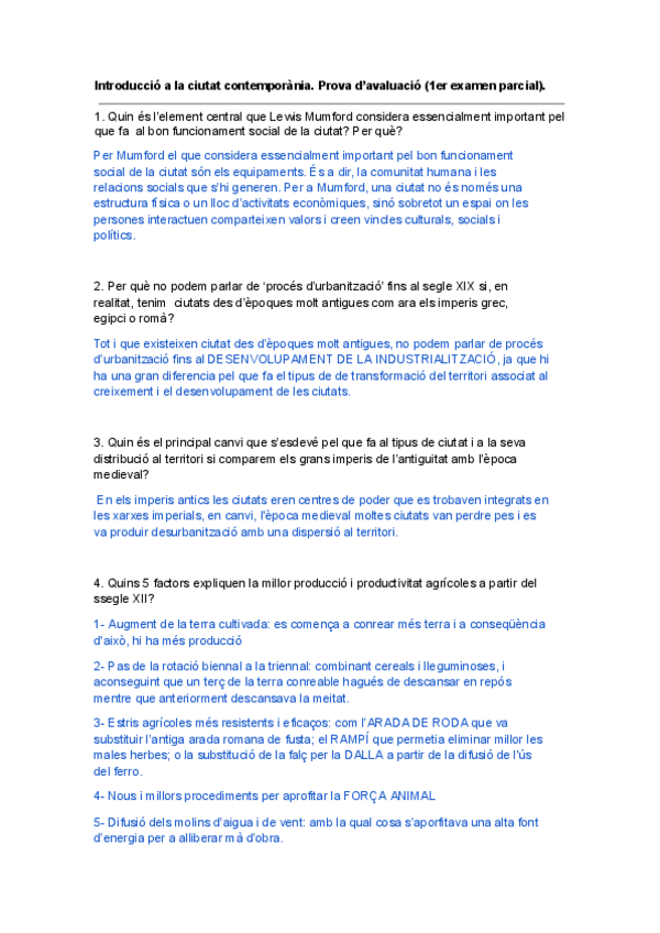 Examen amb solucions del 1r parcial de Int. a la Ciutat Contemporània del curs 24-25