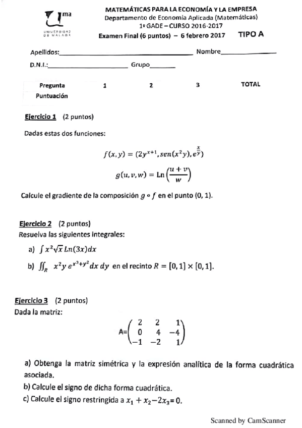 Examen 2016. Bloque 1
