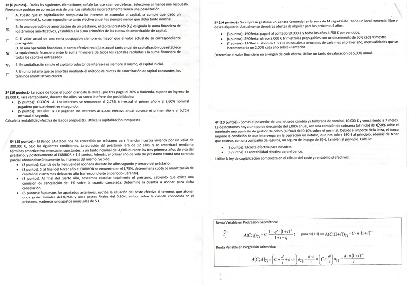 He publicado nuevos examenes de 1º Matemáticas de las Operaciones Financieras: Examen Mat. Financieras