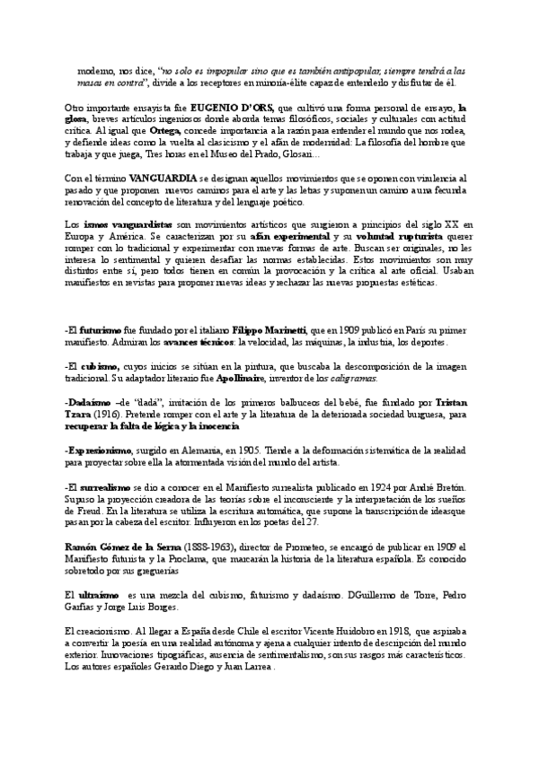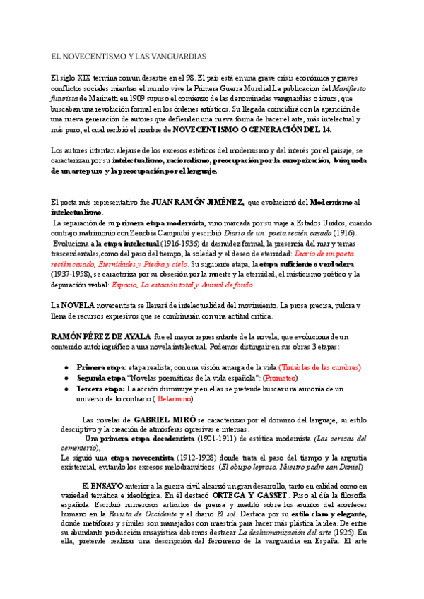 Apuntes sobre el Novecentismo y las Vanguardias perfectos para aprobar tu examen de literatura.