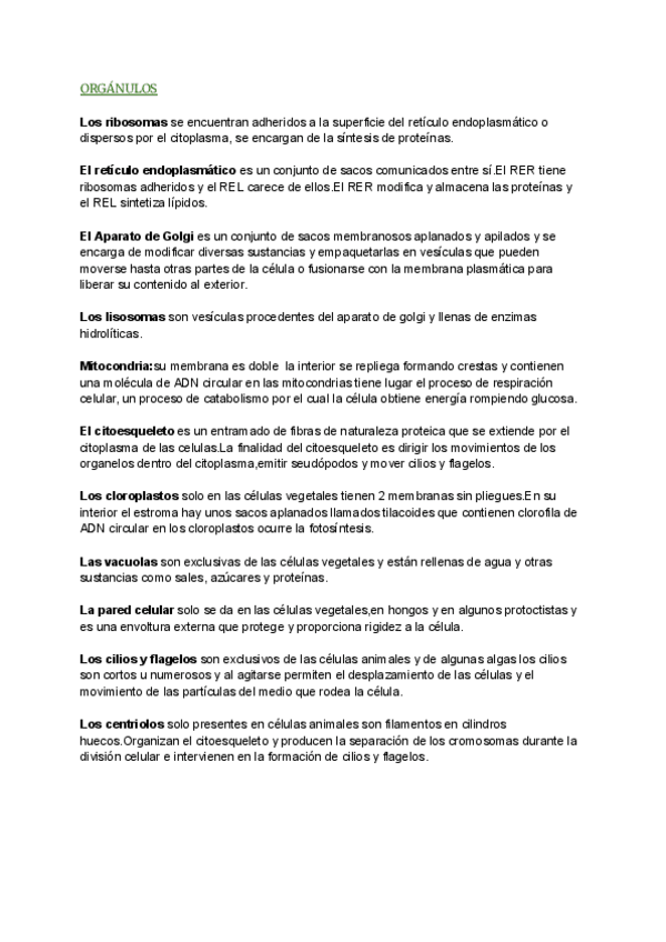 Definiciones de los distintos orgánulos que posee una célula eucariota.