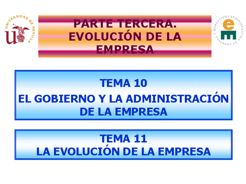 Diapositivas de los epígrafes de los temas 10 y 11 correspondientes al temario del curso.